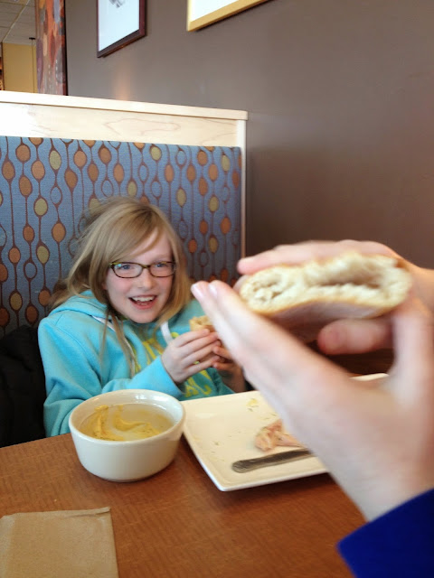 They could also make their bread rolls, that they ate only the insides out from, talk. Quite fascinating. (the phone wanted to focus on the real talker - Riley - instead of the noisy mouth of the bread-man)